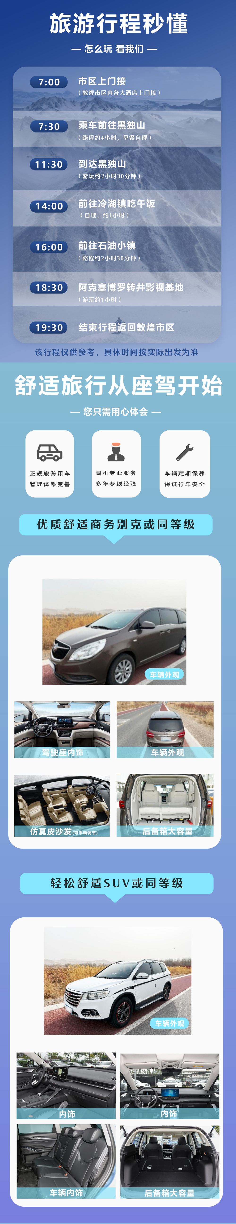 於指定地點接載07:00 敦煌 於指定地點接載 敦煌市區範圍內提供上門接送服務,超出範圍則不提供接送