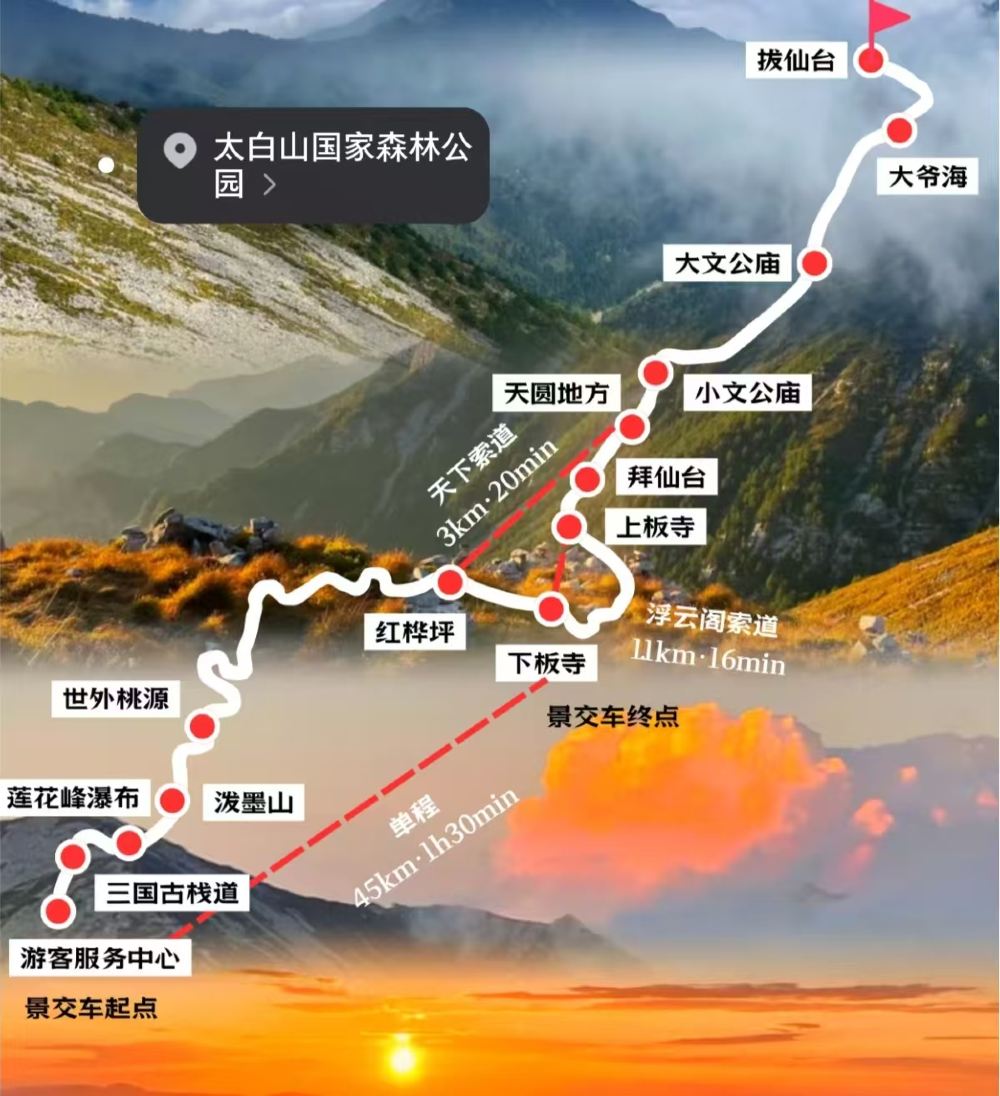 【溫馨提示】太白山國家森林公園···天圓地方海拔較高,量力而行,帶好防寒衣物!午餐