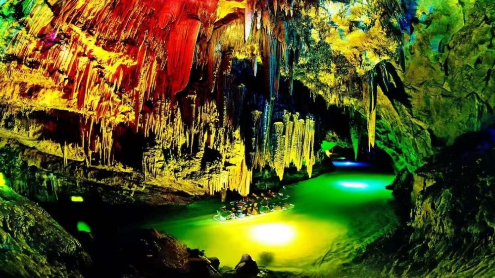 ▲ 鐘乳奇峰景萬千,輕舟碧水詩畫間,鍾秀只應仙界有,人間獨一此洞天