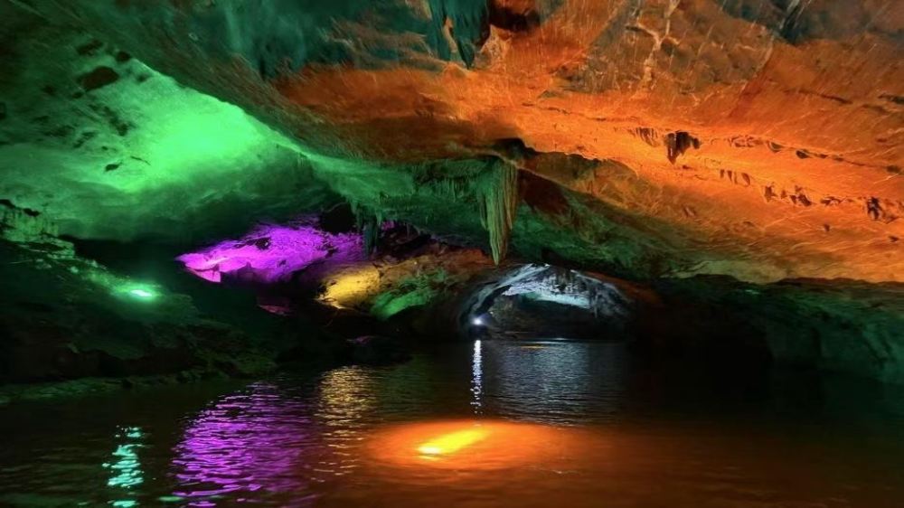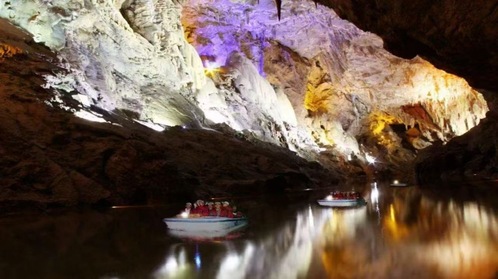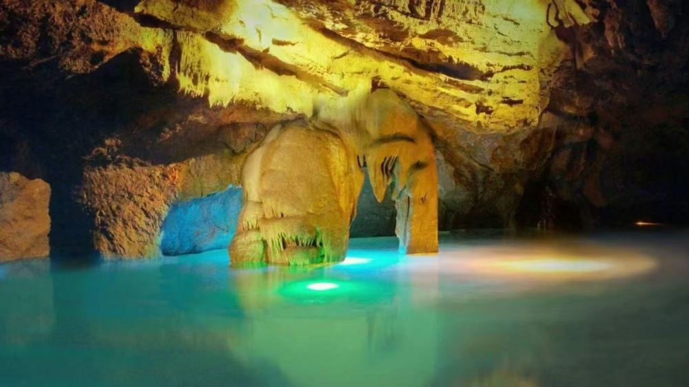 ▲ 數百萬年前形成的大型石灰岩充水溶洞,洞內深邃寬闊