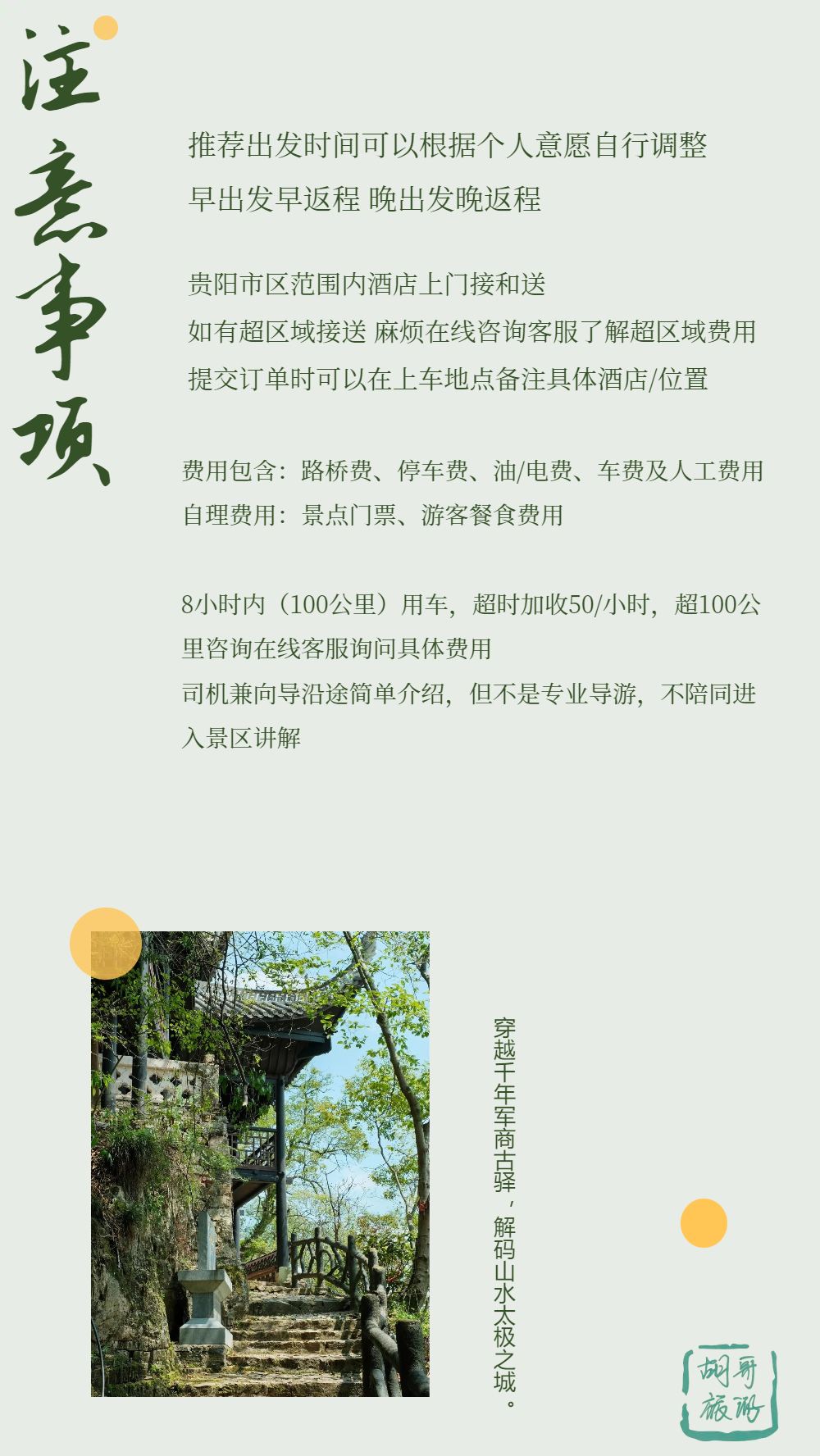 19:00 於貴陽 南明區,花溪區,雲巖區,烏當區,白雲區,觀山湖區下車 指定區域以外提供接送服務,需額外收費 出發時間和返程時間僅供參考,可自行和師傅商量溝通