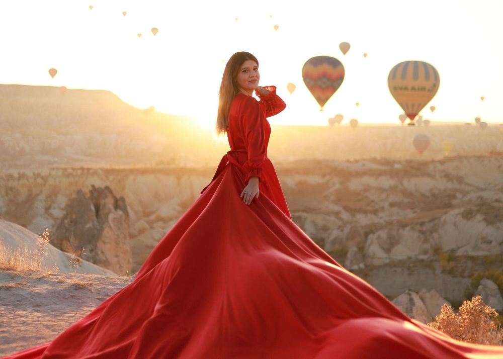 我們將於卡帕多奇亞日出黃金時段到訪4-5個熱門地點進行拍攝。包括熱氣球飛行區域、最佳背景山谷區、秘密洞穴及煙囪/澤爾維谷,以及客戶酒店的露台。預計拍攝約200張照片,並從中挑選10張為我們的模特兒進行Photoshop修圖。免費提供飛天裙(一件),顏色及款式由客戶選擇。整個拍攝過程平均需時2.5小時,我們會使用特殊燈光設備以拍攝更銳利清晰的照片。