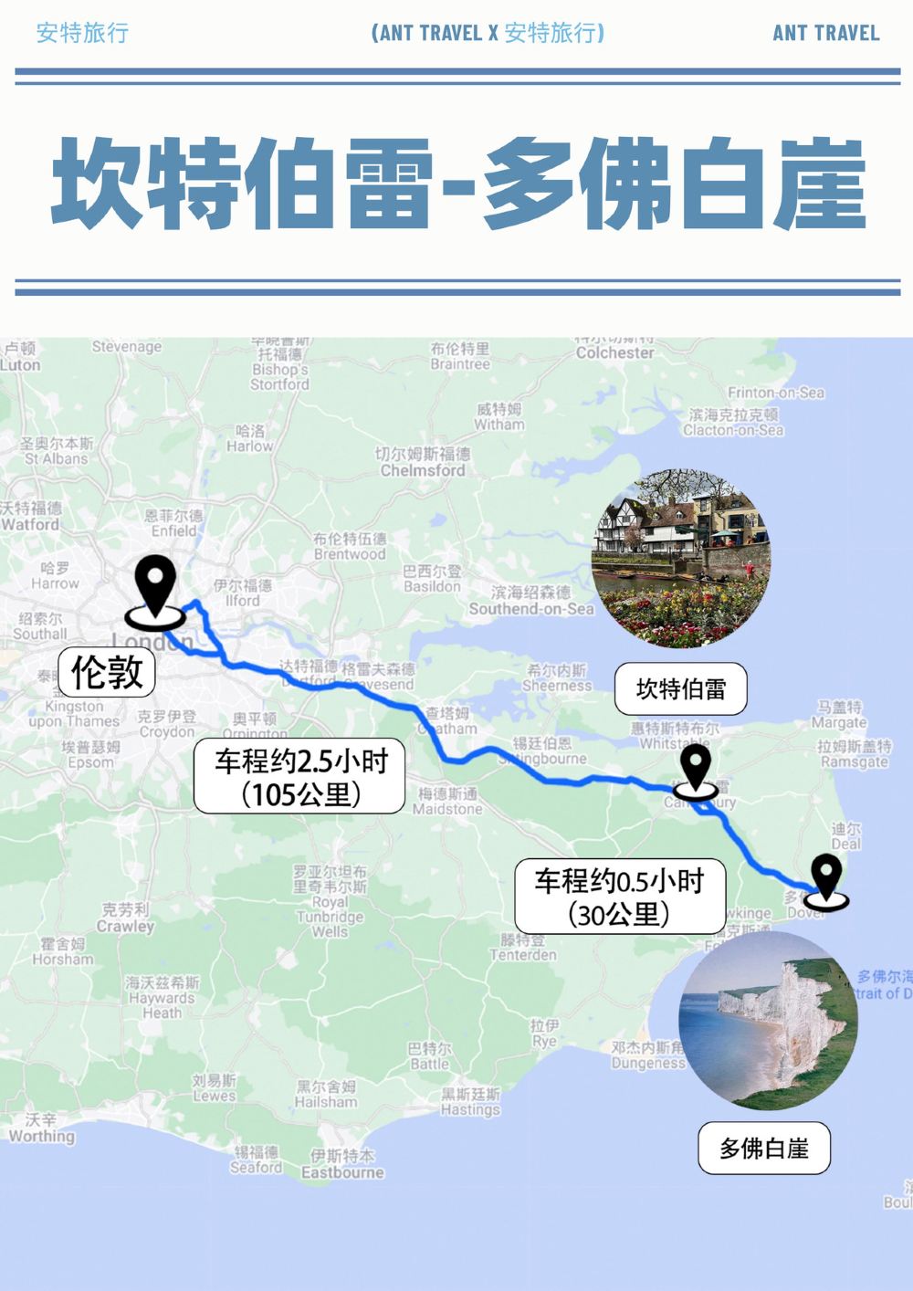 抵達多佛白崖,站在純白懸崖之巔,俯瞰英吉利海峽的壯闊碧藍。交通