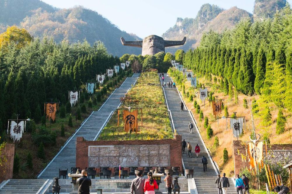 【神農壇】是為紀念炎黃子孫的祖先炎帝神農氏而建,作為神農架的南大門,也是大多數遊客遊神農架的第一站。祭壇廣場氣勢恢宏,主體建築是一座高21米,寬35米的神農巨型牛首人身雕像,神農炎帝立於蒼翠群山之間,以大地為身軀,雙目微閉,似在思索宇宙奧秘。景區內分為主體祭祀區、古老植物園、千年古杉、蝴蝶標本館、編鐘演奏廳五大部份,而祭祀區內的地上,是代表天和地的圓形和方形圖案,其中「地」上的五色石又代表著五行學說中的金、木、水、火、土。整個景區青山環抱,風光秀美。