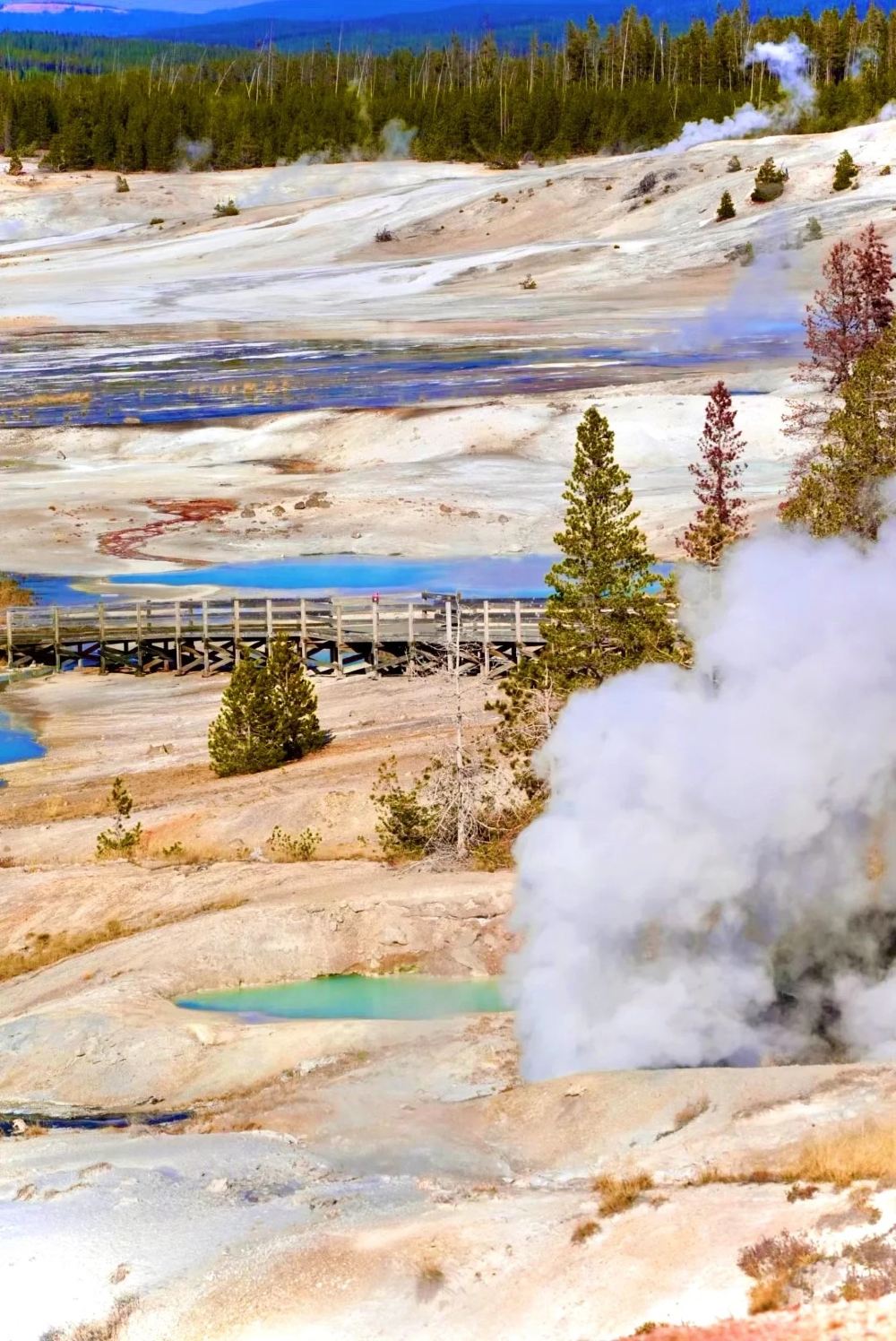 世界上少數的「酸性噴泉」,可以通過簡單的徒步體驗黃石國家公園中溫度最高的區域,觀賞奇特的地熱景觀午餐