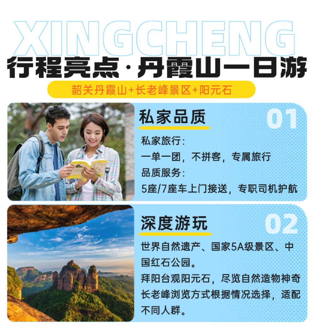 韶關丹霞山+長老峰景區+陽元石一天遊+私家團包車遊+不含門票