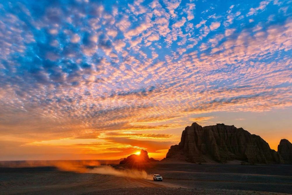 ▲ 誰能想到,死寂的無人區竟藏著一片紅柳灘。它們將根深深扎進砂礫之中,與雅丹為伴,聆聽絲路駝鈴的餘音。當風掠過時,枝葉搖曳,彷彿在對每個闖入者說:別怕荒涼,生命自會找到生長的方向。