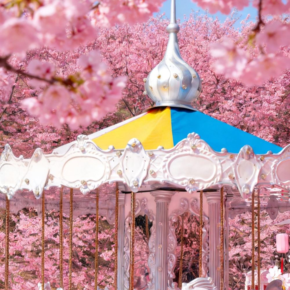 核心機位(出片率100%)山頂咖啡車、臥櫻池、櫻花大道、鐵索橋、櫻花草坪、旋轉木馬景點活動