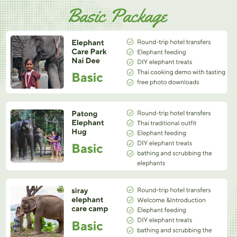 - 深度互動:在布吉寧靜的私人海灘,您可以與牠們同行、與大象一起沐浴、餵養,創造難忘回憶。