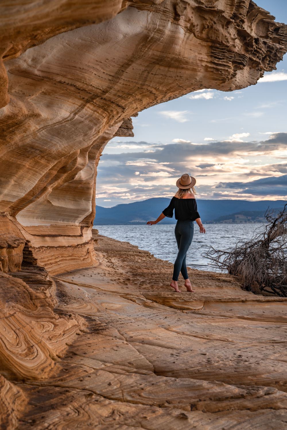 海浪風蝕形成的砂岩地貌,氧化鐵留下了紅、黃、棕色的旋轉條紋。返回指定地點