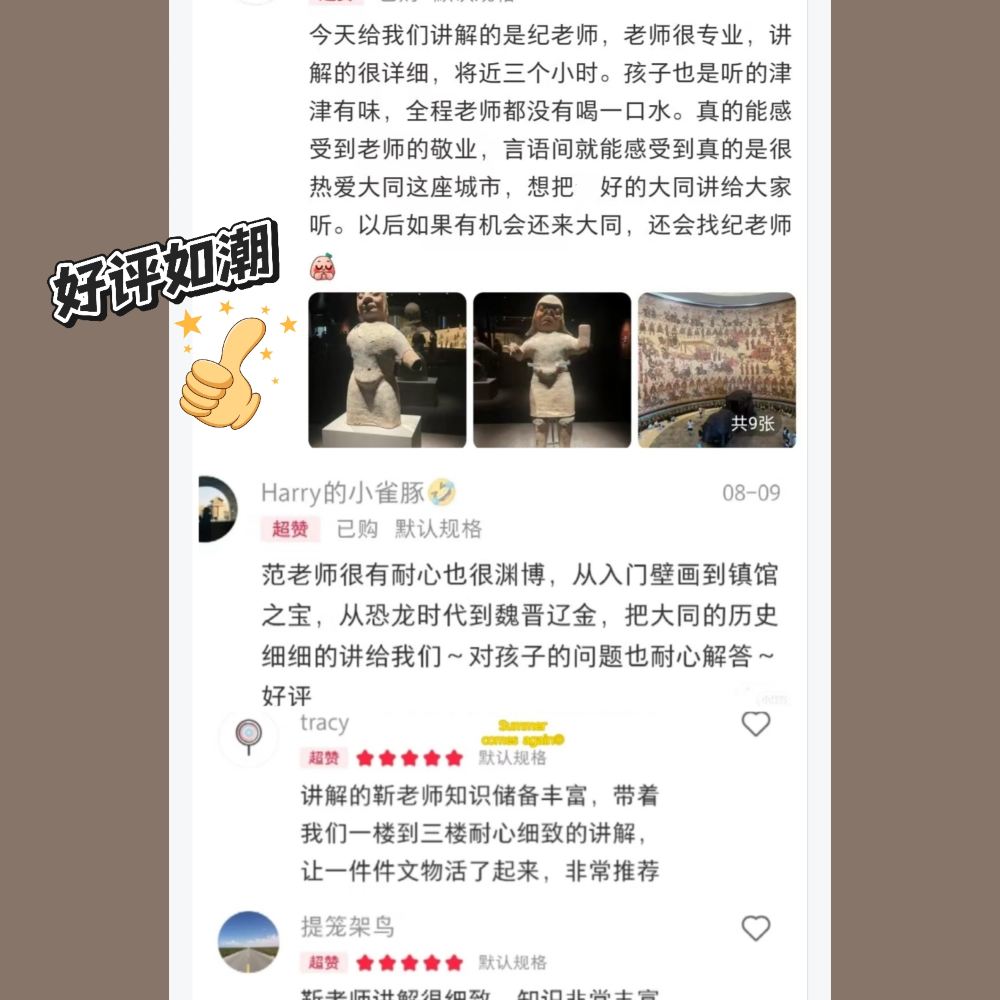 深度大咖講解,此講解為旅行社提供,非大同博物館官方講解返回指定地點