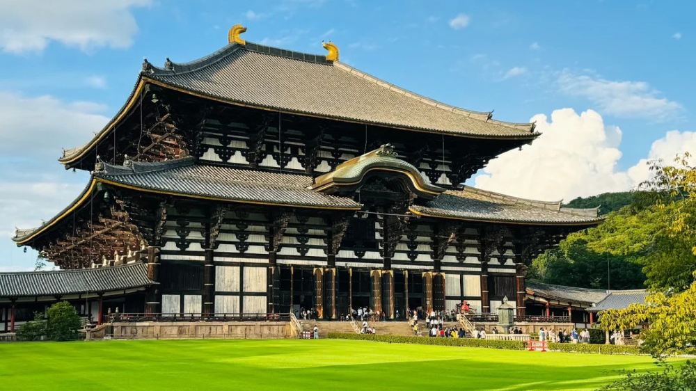 ▲ 【東大寺】又稱大華嚴寺,係752年,聖武天皇為咗祀奉大佛並作為日本寺院嘅總寺而建,係華嚴宗嘅大本山。兩次火災燒毀咗建築,而家嘅係1692年重建,為原建築嘅三分之二。東大寺正佛殿,正面寬度57米,深50米,為世界至大嘅木造建築。