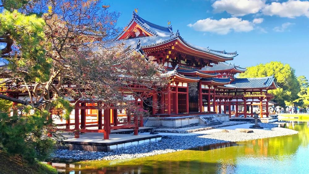 ▲ 【平等院】平安時代池泉舟遊式寺院園林嘅代表,1994年被聯合國教科文組織列入世界文化遺產名錄。最出名嘅要數「鳳凰堂」。建築物向兩翼方向延伸,望落去就好似鳳凰展翅飛翔咁。
