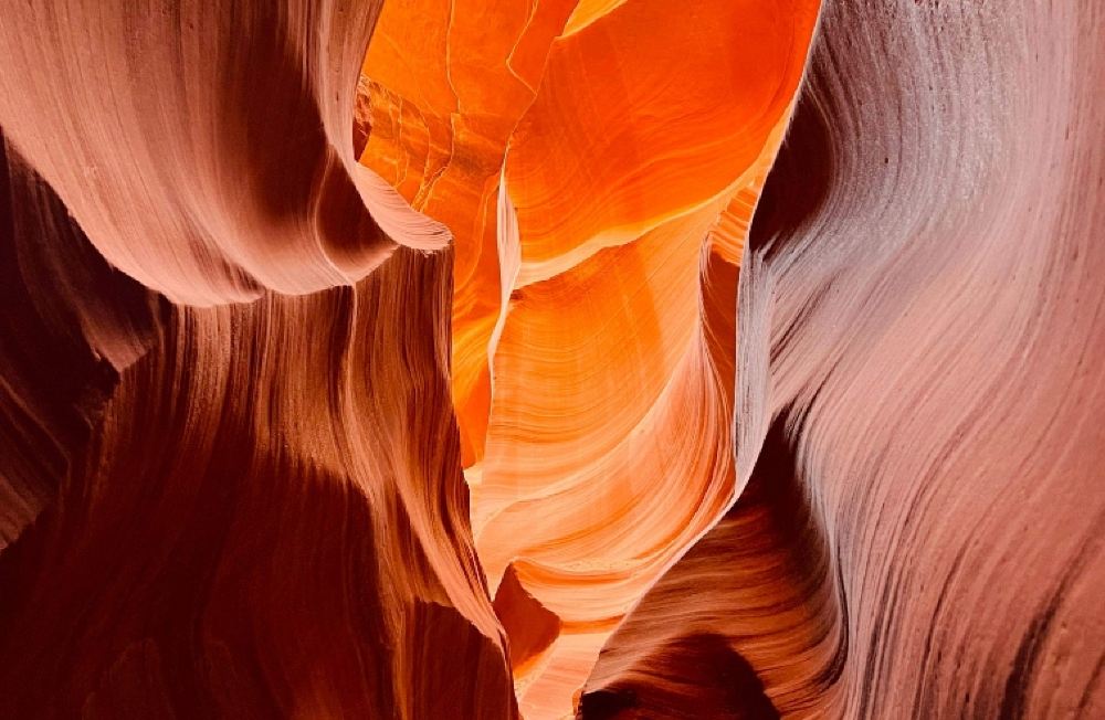 納瓦霍人稱它為Hasdeztwazi,意為「螺旋岩拱」。陽光透過狹窄的縫隙灑入谷底,隨著太陽的移動,光線在谷壁上跳躍、折射,與岩石本身的礦物質相互作用,呈現出橙紅、紫紅、金黃等絢麗色彩,像上帝打翻了調色盤,構成了一幅幅美輪美奐的光影畫卷。