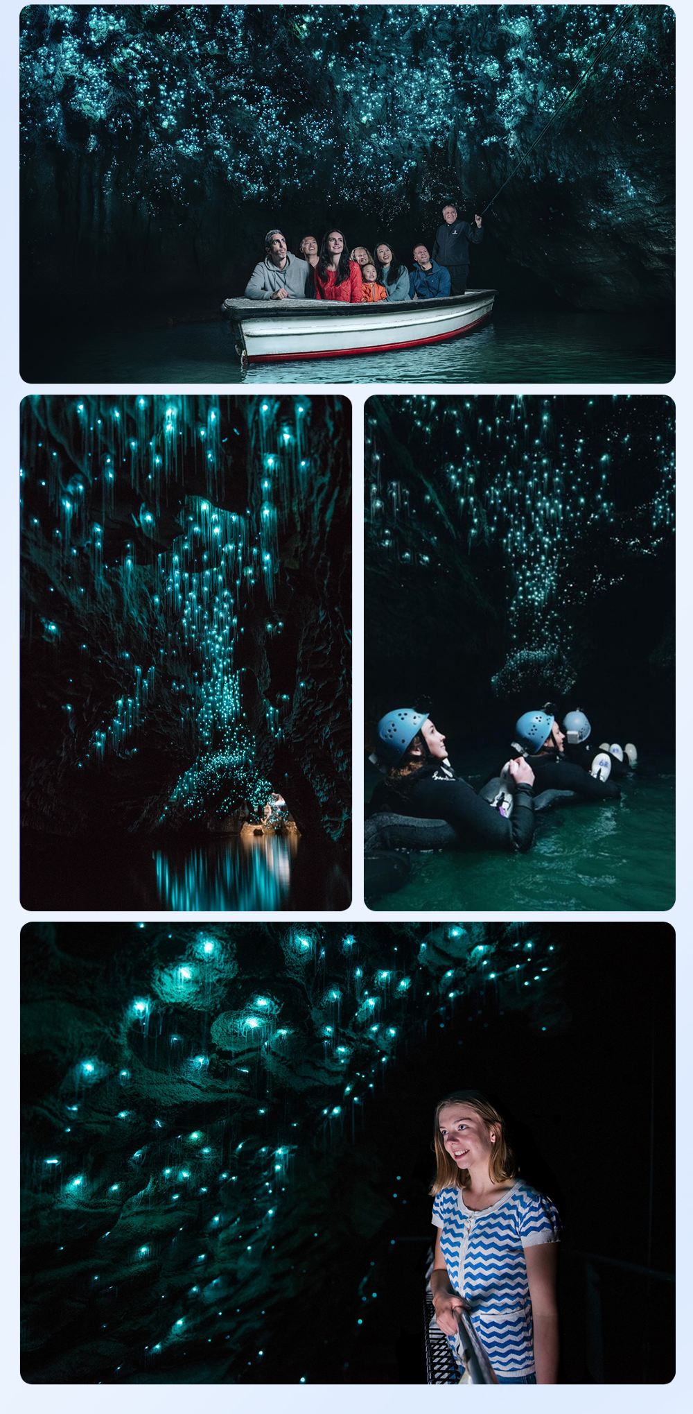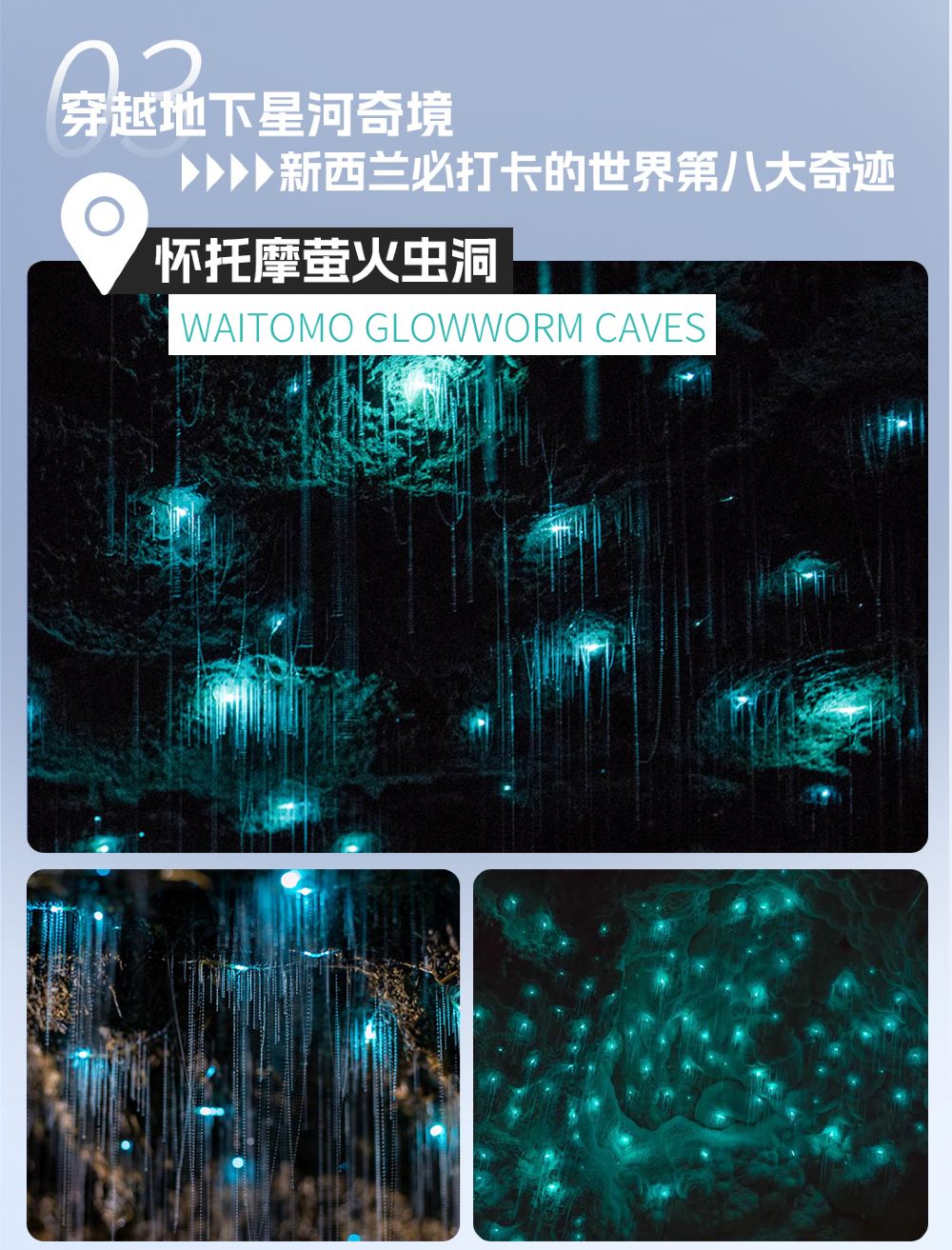 進入洞穴,導遊講述溶洞和螢火蟲等知識,接著乘船進入佈滿螢火蟲的地下世界,觀賞頭頂萬千螢火蟲交通