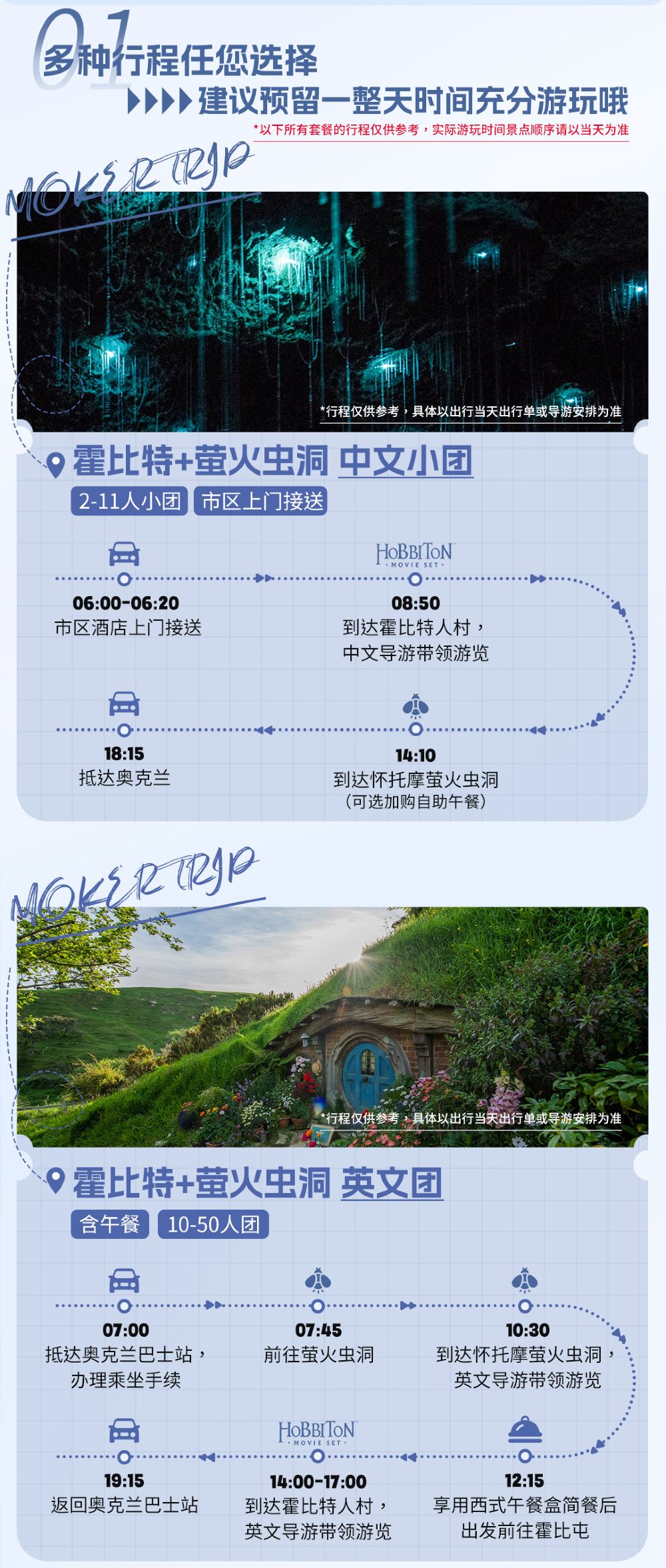 A-哈比人+螢火蟲丨中文小團 | 車輛(車型待確認) | 普通話 | 提供去程接送 | 拼團 | 11位旅客 | 司機及遊覽講解 | 回程於指定地點解散