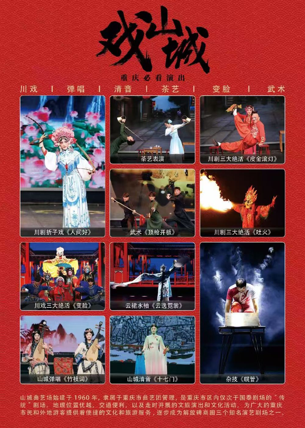 【重慶川劇演出】重慶山城曲藝場《戲山城》變臉川劇表演:地道重慶戲+川劇變臉+吐火+茶藝表演+可選戲服妝造