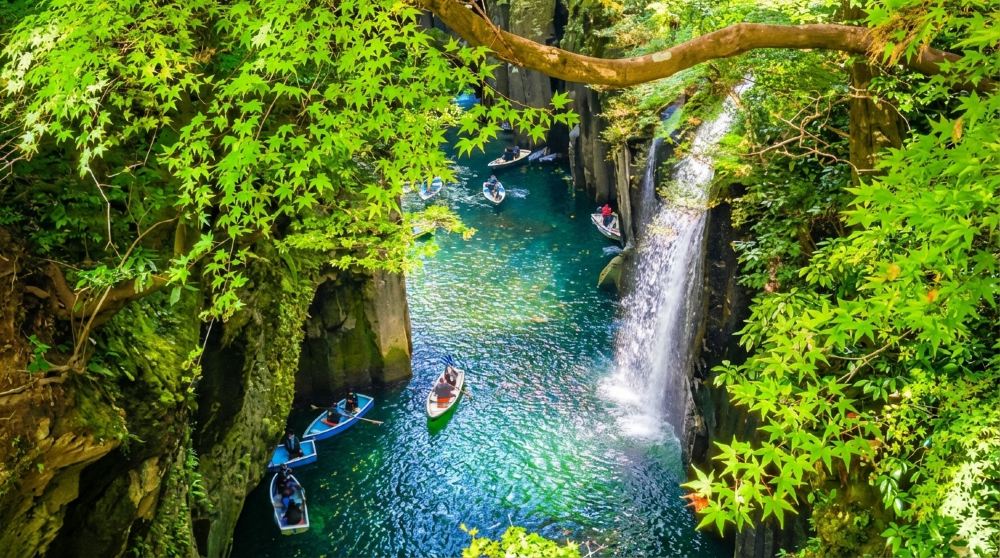 - 沿高千穗峽谷溪流,聆聽瀑布與風聲的低語