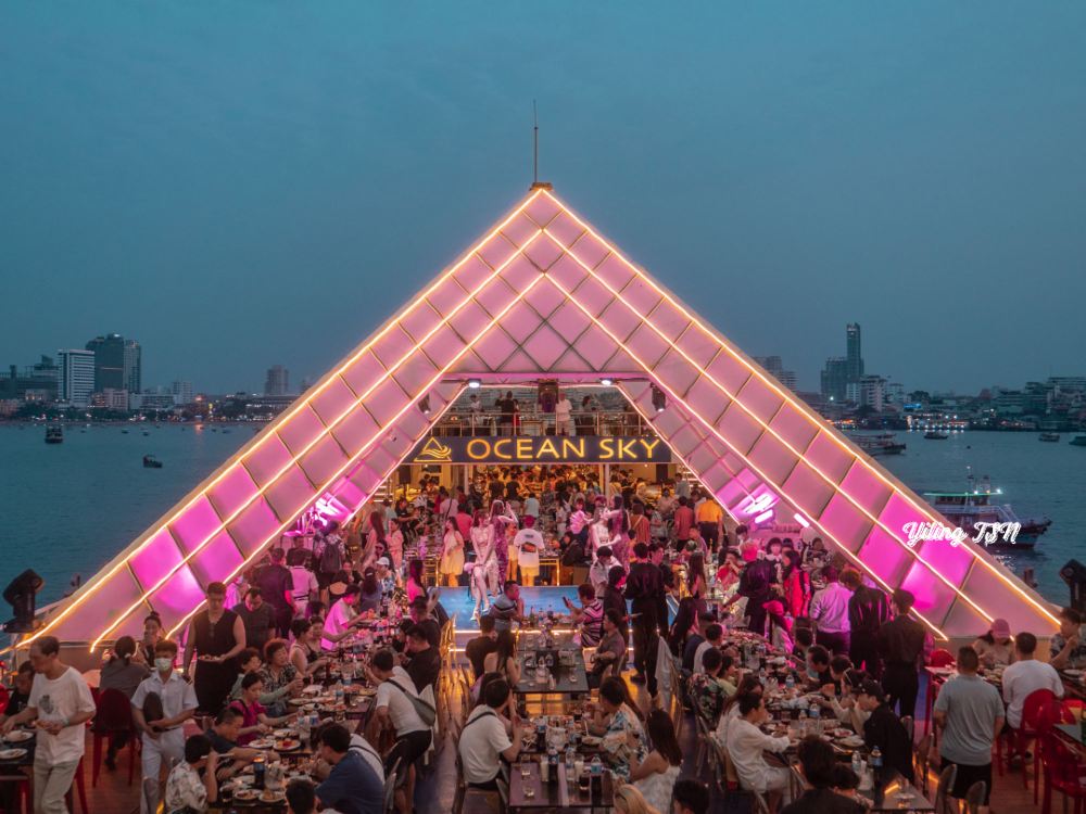 而海天盛筵海上餐廳就位於此遊船的3樓,可以欣賞一望無際的芭堤雅,吹著海風,享受激情四射的歌舞表演。