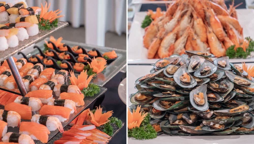 一邊聽著現場樂隊演奏,一邊享受豐盛的豪華自助大餐
