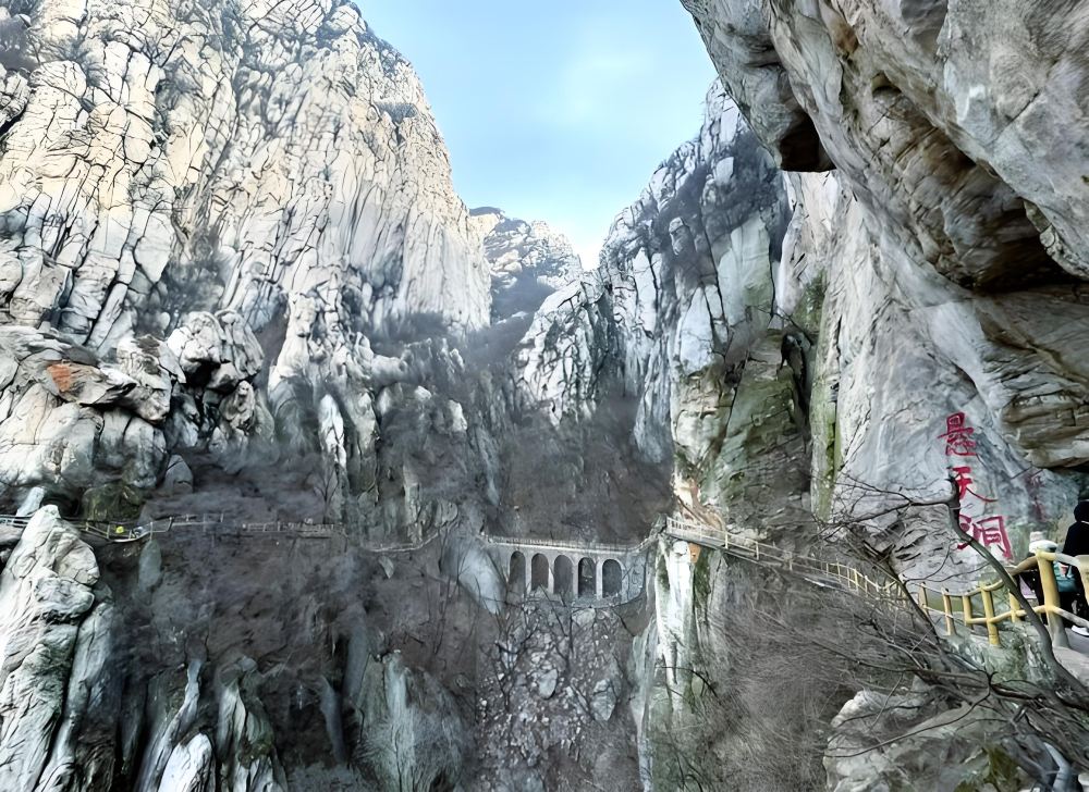 - 三皇寨書冊崖懸空棧道徒步,近距離觀賞丹霞地貌與嵩山石英岩層。