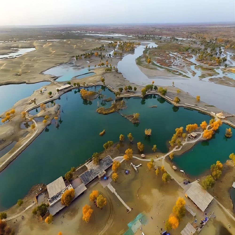 ▲ 沙漠、湖泊、胡楊