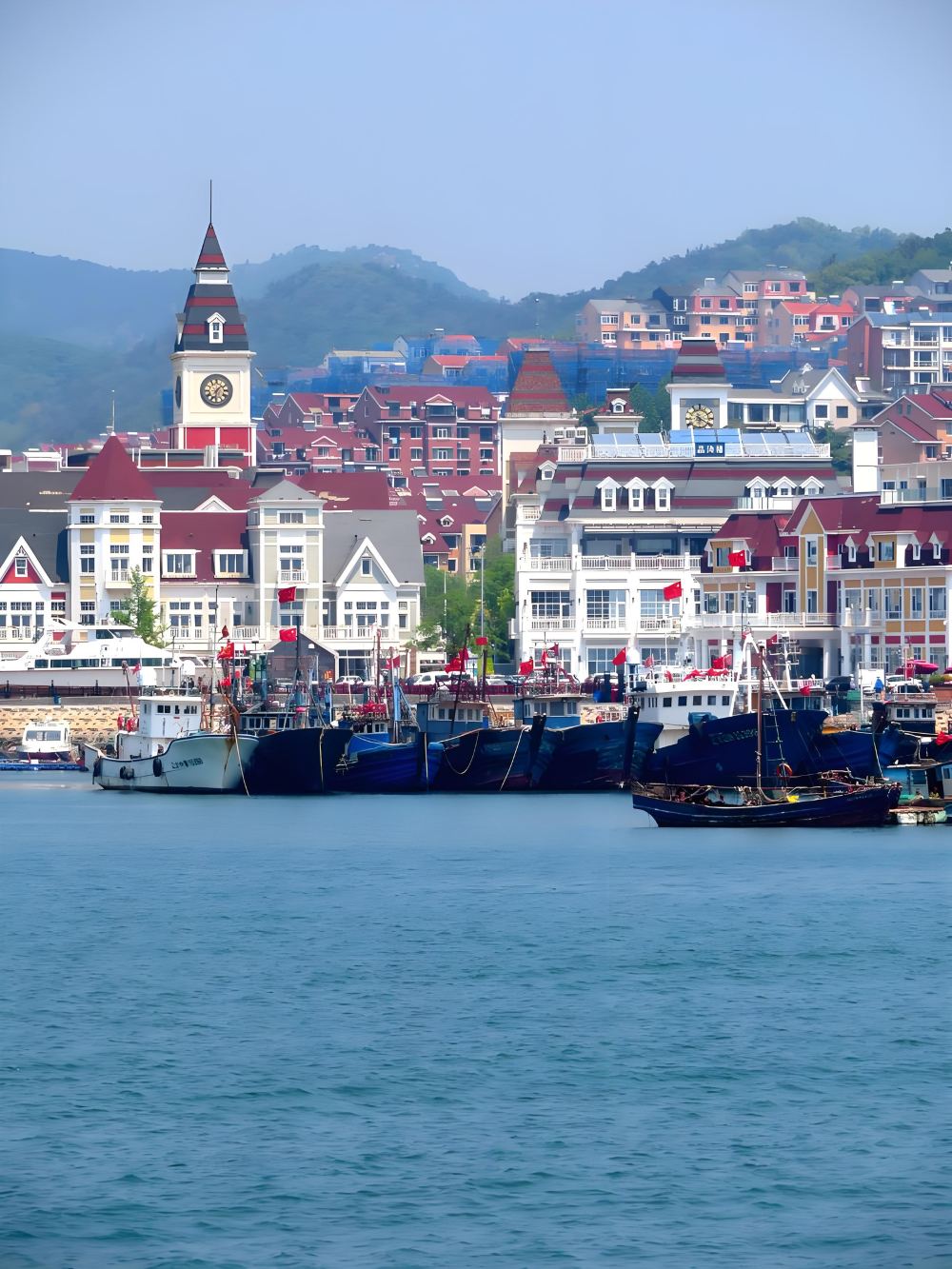 ▲ 位於老虎灘海洋公園東側的虎灘漁港內,這裡景觀優美,環境極具文藝氣息。漁人碼頭的文化概念源自歐美,這裡一邊是許多五顏六色的歐式建築,另一側是停泊著漁船的海港,充滿著濃郁的歐陸風情。 漁人碼頭海岸線長約1.7公里,西側和東南角區域都有沙灘,南側有一條長長的棧橋延伸至海中,港灣內常常停滿了漁船和遊艇,風景十分迷人,吸引了許多來散步和攝影的遊客,以及來拍婚紗照的新人。 而這裡眾多歐式建築則形成了一個特色街區,開著許多咖啡吧和餐館,也是文藝小資一族喜愛聚集的地方。這裡的許多咖啡吧和餐館都有露天