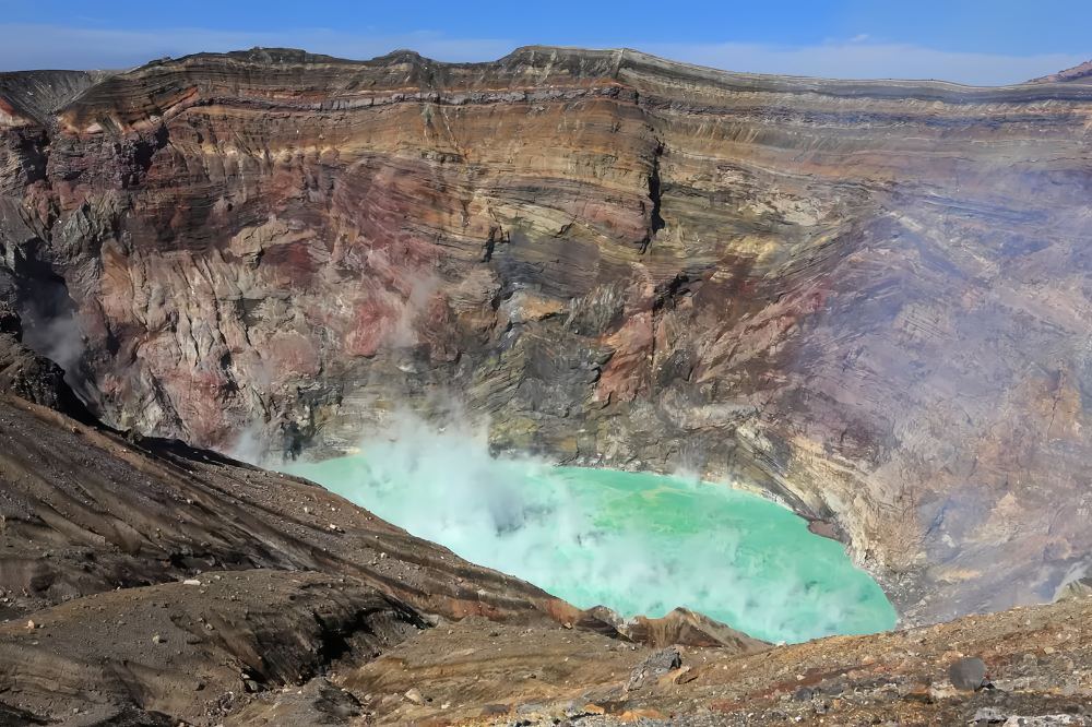 ▲ 阿蘇山火山口:阿蘇中岳火山口是少數可近距離觀察的活火山之一。乘坐接駁車至觀景處,可見火山口內煙霧繚繞,感受地球的生命力。請注意,開放情況會根據當天火山活動指數調整。
