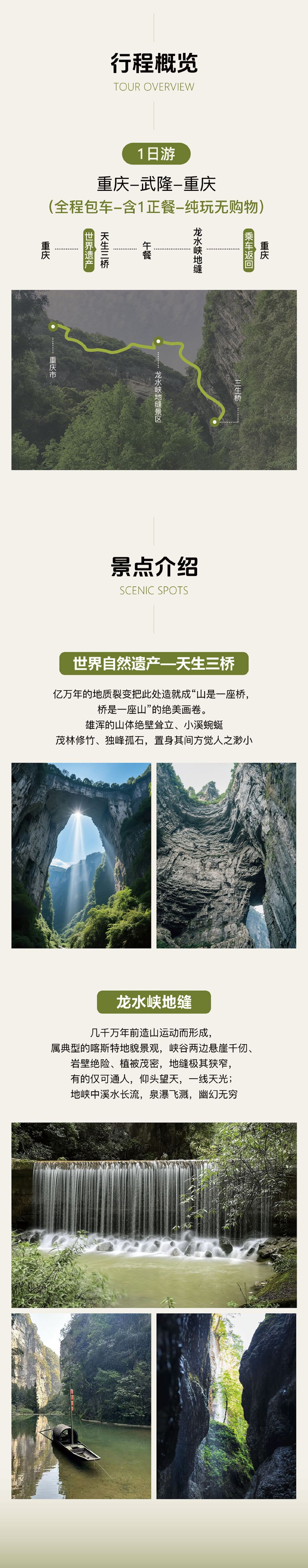重慶天生三橋+龍水峽地縫一日遊|含門票|含車