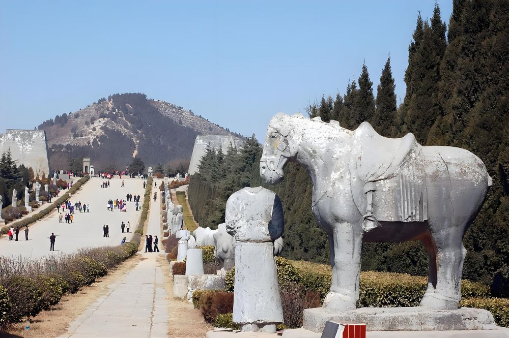 最後一站是乾陵,它是唐高宗李治與武則天的合葬墓,依山為陵,氣勢恢宏。陵園神道兩側矗立著眾多精美的石雕,彰顯著大唐盛世的繁榮昌盛。登上梁山,俯瞰乾陵全景,感受歷史的厚重與滄桑。