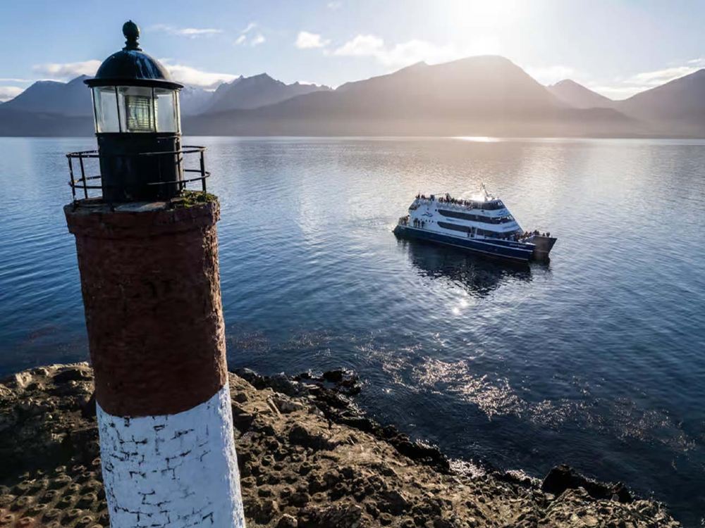 烏斯懷亞出發比格爾海峽雙體船巡遊之旅。從旅遊碼頭出發,航航行駛向比格爾海峽。離開海岸後欣賞到烏斯懷亞、工業區和雄偉的奧利維亞山和辛科赫馬諾斯山全景。將參觀布里奇斯群島,在那裡下船。在島上的徒步旅行,這是探索比格爾海峽中部一個小島的好機會。再次登船向西南航行,接近洛斯洛沃斯島,可以在船上欣賞海獅標本,觀察牠們的棲息地。繼續航行前往洛斯帕哈羅斯島,那裡是麥哲倫鸕鶿和帝王鸕鶿的家園,是觀察各種海洋鳥類的理想地點。前往Les Eclaireurs 燈塔,該燈塔靠近 1930 年 Monte Cervantes 號沉船的地點。在每個景點,雙體船會停下來並轉彎,讓乘客拍攝理想角度的照片。回程時將欣賞到 Túnel 和 Fique Estancias 景觀,接近烏斯懷亞時看到馬蒂亞爾山及其冰川景觀。