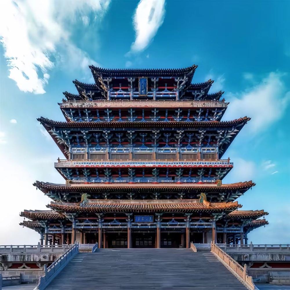 ▲ 它是國家AAAA級景區、中國四大歷史文化名樓之一,因王之渙《登鸛雀樓》而千古流芳,坐落於山西省運城市永濟市蒲州古城西黃河東岸 ,仿唐高臺樓閣,外觀三層四簷、內部六層,總高73.9米,唐風彩畫工藝精湛。