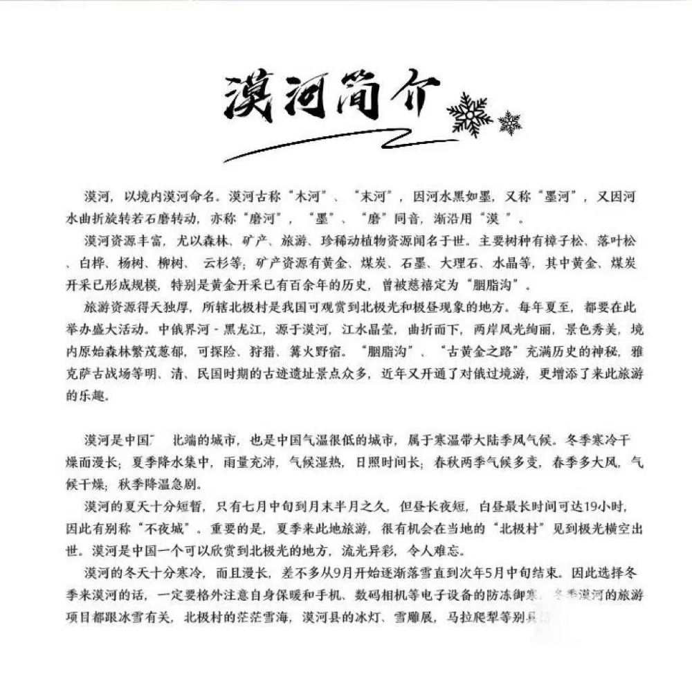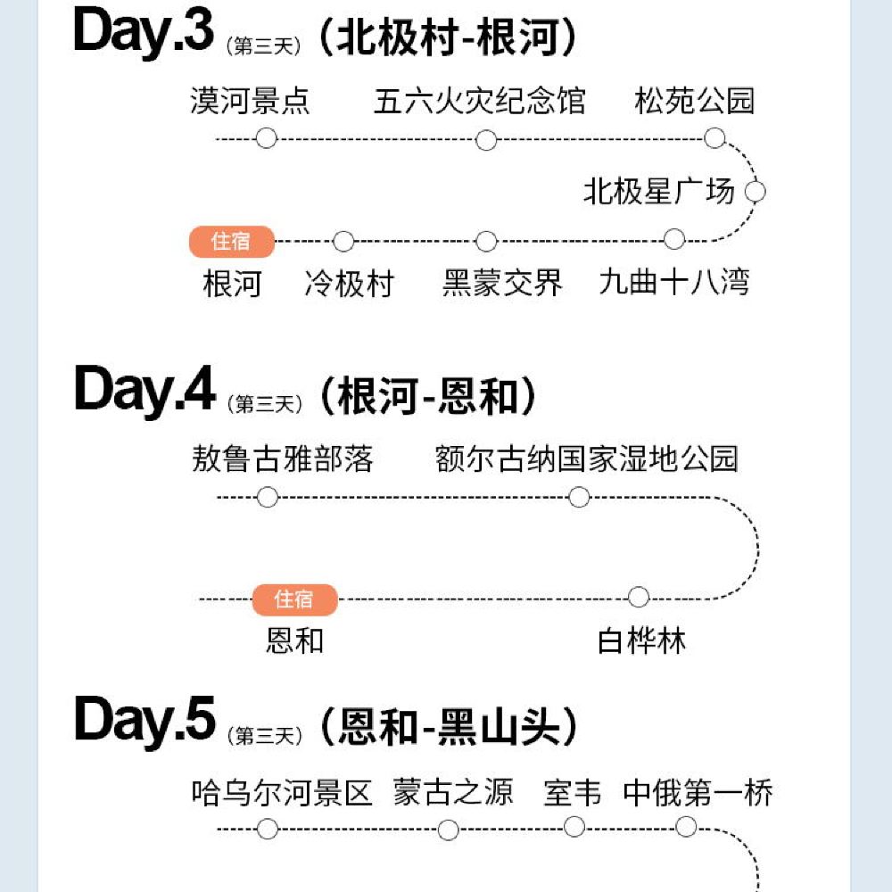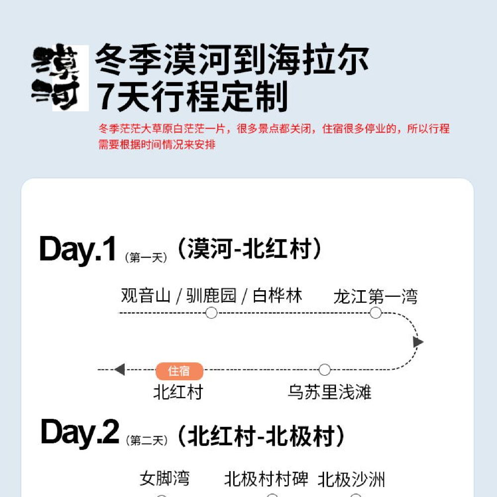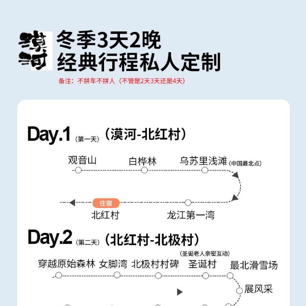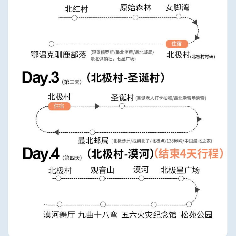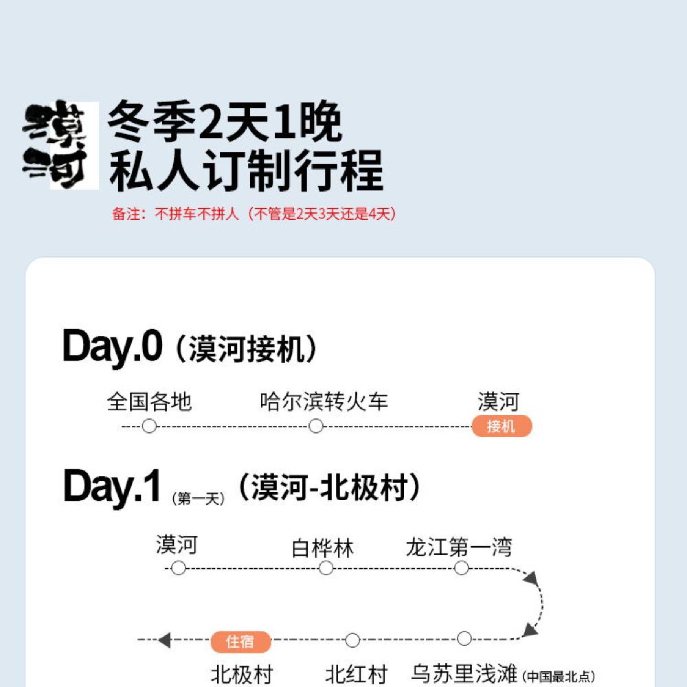 漠河+北極村+鄂溫克馴鹿園+最北郵局+最北哨所一日遊【包車】