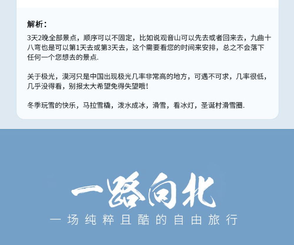 - 精心打造高端客群,一團一車一司機精品小團遊,純玩無購物,全程消費透明無隱藏收費,告別傳統旅遊模式