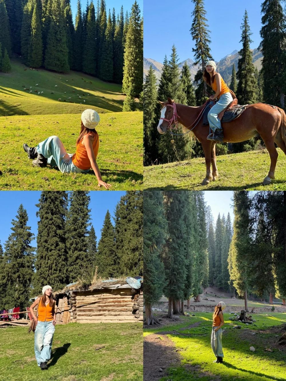 ▲ 【出片&玩法指南】 1.齊夢德觀景台:爬棧道20分鐘解鎖《海蒂和爺爺》同款山坡,雪山、雲杉、草原三件套一次性打包進你的取景框,無人機起飛秒變國家地理紀錄片。 2.喀峰大本營:躺在開滿小花的草甸上曬太陽,偶遇叼著草根的哈薩克牧羊人,和低頭啃草的牛群羊群拍治癒系vlog。 3.隱藏彩蛋:往森林深處走會發現溪流與倒木,穿上飽和度高的衝鋒衣或白裙子,輕鬆拿捏森系寫真氛圍感。