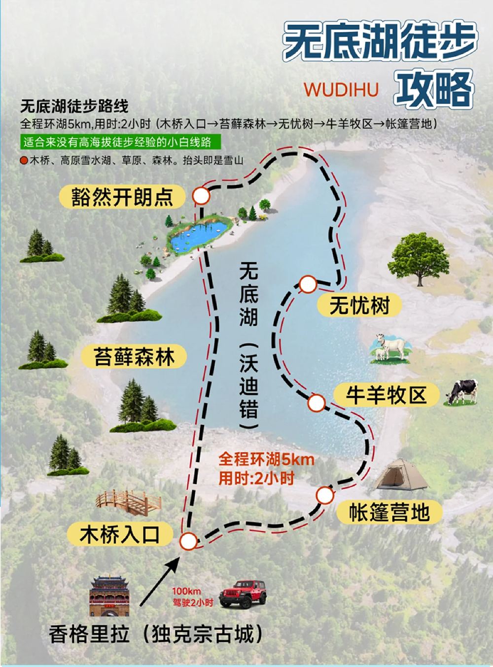 【8人團-森林·牧場·湖泊】徒步·香格里拉+無底湖跟團一日遊
