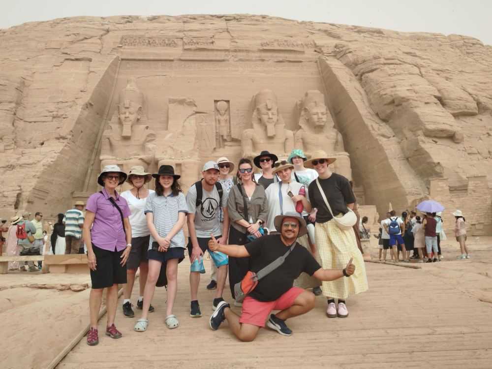 - 抵達後,您將首先參觀拉美西斯二世大神殿,這是埃及最令人印象深刻的古蹟之一。這座神殿以四尊拉美西斯二世的巨型雕像聞名,這些雕像莊嚴地矗立在入口處,每尊高約20米。