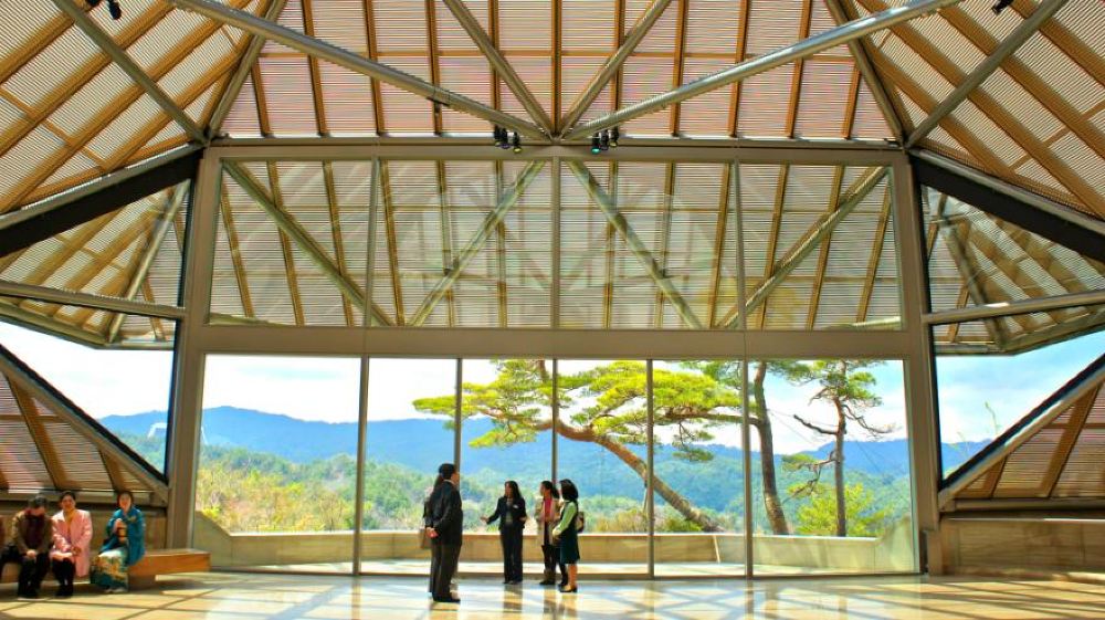 ▲ 【美秀美術館】-貝聿銘的世外桃源--含自行午餐時間,自由活動 由著名建築師貝聿銘先生設計,以《桃花源記》為構想,遠離都市之外,很特別的是建築80%都埋藏在深山中,夏季林木蔥蔥,山路迢迢,館藏包括日本、中國、南亞、中亞、西亞、埃及、希臘、羅馬等古文明的藝術品 ※開館日期官網確認http://www.miho.or.jp/calendar/常設展時門票:1100日元;特別展時門票1300日元