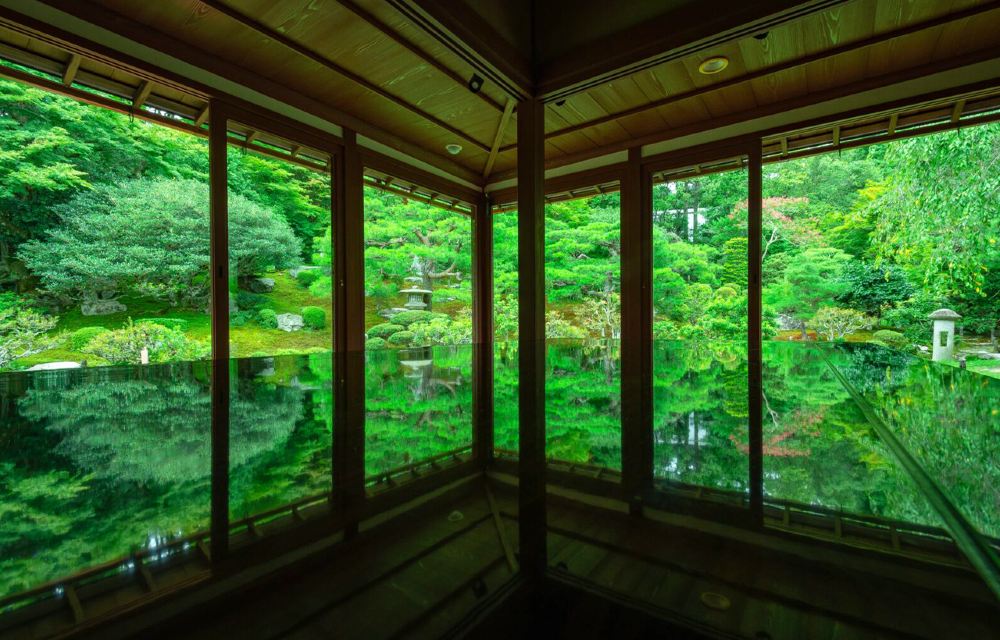 ▲ 【舊竹林院】-琉璃光院同款鏡面倒影 可欣賞四季不同風景的國家指定名勝庭院,曾經是比叡山上高僧隱居之地。日本攝影師推薦,院內閣樓的格局和琉璃光院相同,可以拍到同款鏡面倒影,院內佈滿青苔,一年四季各有特色