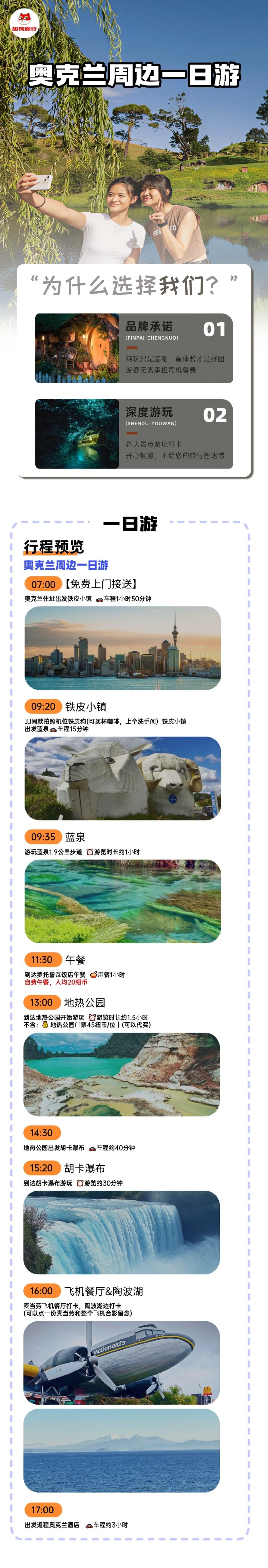 新西蘭奧克蘭來回一日遊【含胡卡瀑布、地熱公園、陶波湖含門票】