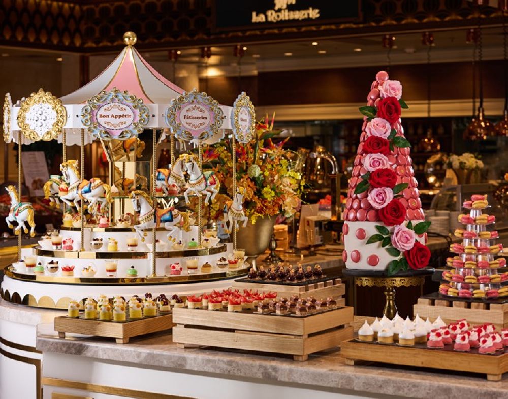 琳瑯滿目的新鮮海鮮吧、手握壽司及刺身;薈萃多國風味的熱盤和即點即製的精緻菜式,包括香煎鵝肝、北京片皮鴨、滋味烤肉及特色手工拉麵等,大廚們精湛的廚藝在開放式廚房內一覽無遺;甜品區的旋轉木馬造型轉盤滿載選擇多樣的精緻甜點,讓您盡情享受甜蜜的邂逅。