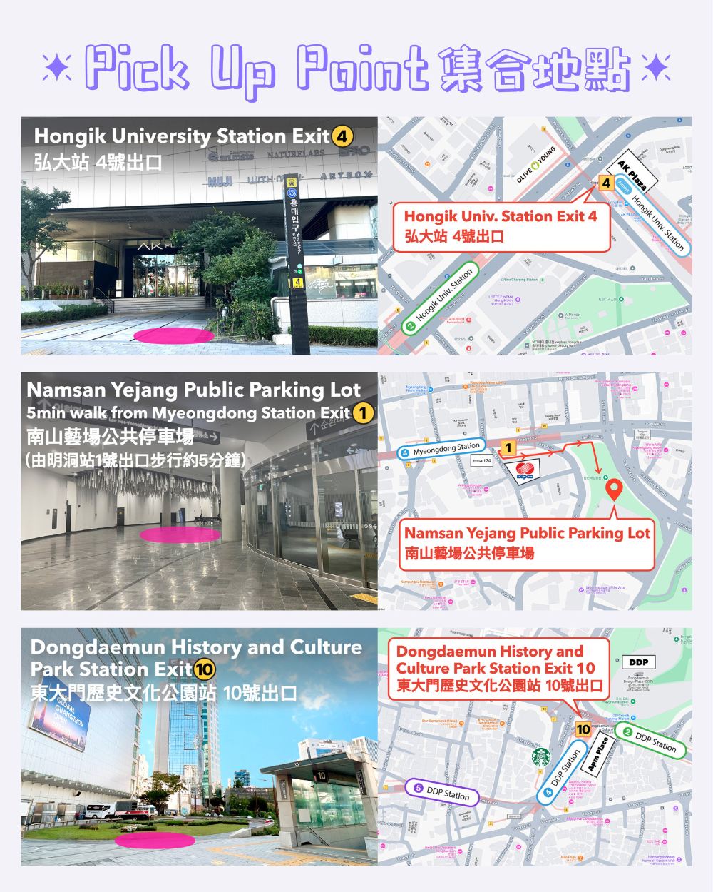 在集合地點集合07:00 首爾 弘大入口站 4號出口 集合