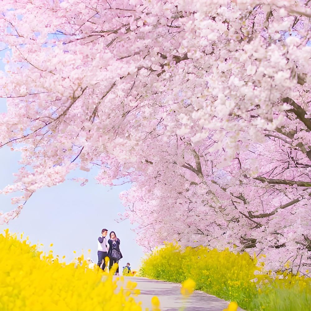 ▲ ▴【權現堂堤】權現堂堤是縣營權現堂公園的4號公園,約1公里的區間種植了1000多棵「染井吉野」櫻花樹。堤壩下有大片的油菜花田,每到花期,粉色的櫻花與金黃的油菜花相互映襯,美不勝收。每年3月下旬到4月,這裡會舉辦櫻花祭活動。活動期間,不僅有超過100家當地特色小店會沿路販賣小吃、特產,還有各種表演和娛樂活動,讓遊客在賞花的同時,也能體驗到當地的文化和風情。