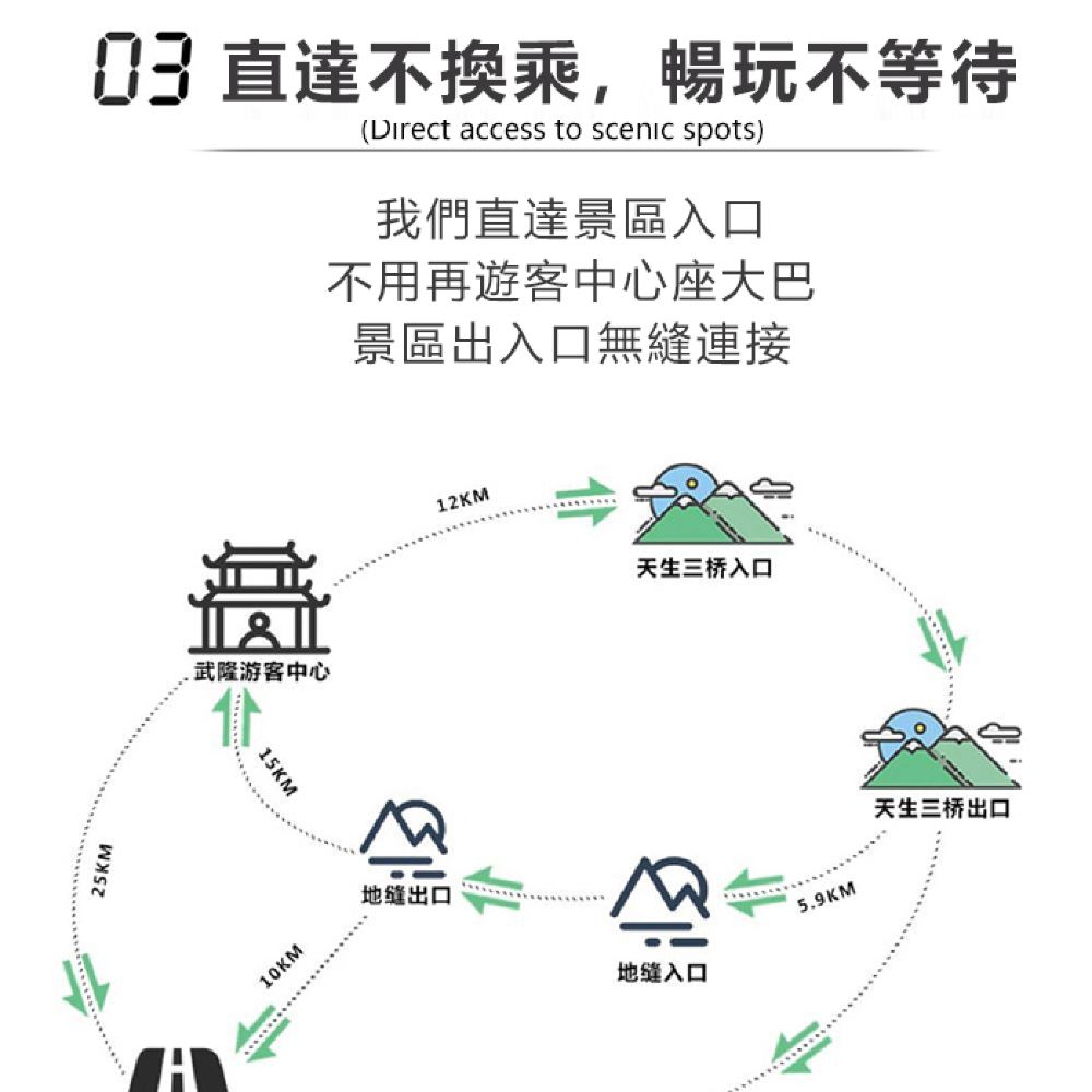A-8人團|天坑+地縫+仙女山 | 小巴(9座位) | 普通話 | 提供去程接送 | 拼團 | 8位旅客 | 司機及遊覽講解 | 不包括餐膳 | 回程接送 | 武隆天生三橋·遊玩項目-觀光電梯 (80米)/中轉車(遊客中心-入口/出口-遊客中心)/懸空玻璃觀景台