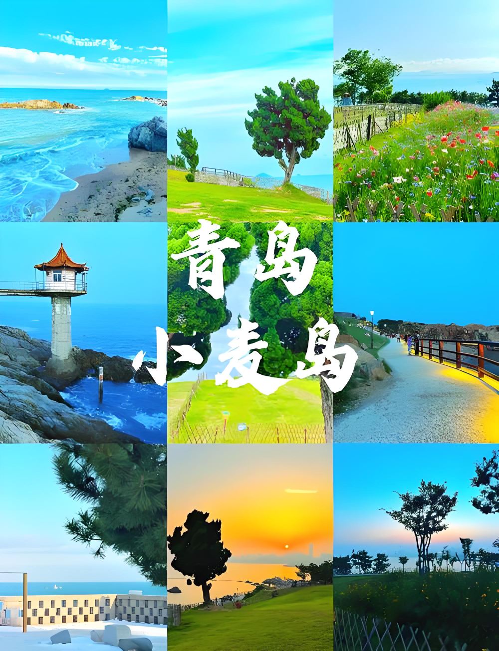 ▲ 小麥島公園位於嶗山區麥島路西50米,小麥帶屬於環形島嶼,有一大片平坦寬廣的綠化草地,遠處就是湛藍的海水,可在這裡遠眺太平洋西海岸海岸線,非常適合打卡拍照。 踏上這片土地,彷彿進入了一個夢幻世界。翠綠的植被、蜿蜒的小路,還有遠處若隱若現的燈塔,每一處都充滿了詩意畫意。 拍照打卡當然不能錯過啊,站在島上的最高點,可以俯瞰整個青島的美景。 當風輕撫過臉龐,可帶著淡淡的鹹味和清新的海藻香。這時候你就可以知道,小麥島到了。