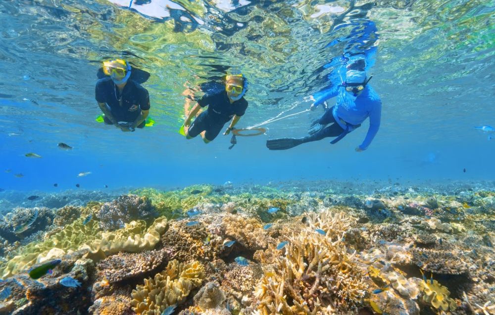 ▲ 單礁摩爾外堡礁一日遊: 摩爾外堡礁——大堡礁的正確打開方式 參加 Sunlover 的大堡礁一日遊,沉浸於摩爾外堡礁的美麗風光之中。 從開恩茲出發僅需 90 分鐘,我們特製的外礁浮橋將帶您享受一片寧靜的天然潟湖,四周環繞著珊瑚花園、熱帶魚、友善的海龜和毛利瀨魚。無論您是初次體驗浮潛,還是經驗豐富的潛水員,都能在這裡按照自己的節奏探索珊瑚礁的奧秘。