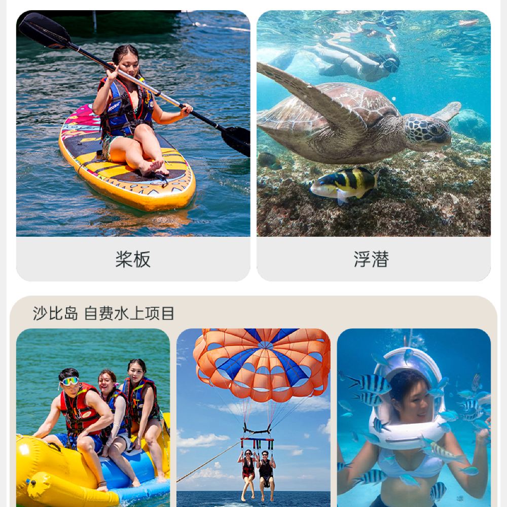 - 水上活動任你搭,漫步海底,或者空中滑翔,刺激享受不停歇,比當地下單更便宜