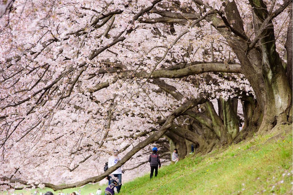 ▲ 背割堤:位於淀川河川公園,係深受歡迎嘅賞櫻勝地。長約1.4公里嘅河堤上種植咗成排嘅櫻花樹,春季盛開時形成壯觀嘅粉紅色隧道。喺度仲可以眺望多條河川匯流嘅開闊景觀。