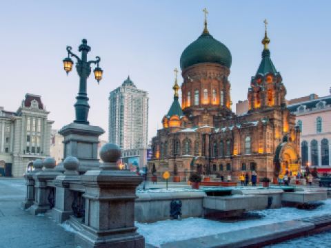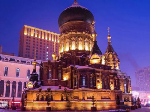 東北哈爾濱+聖索菲亞大教堂+東北虎林園+中央大街+冰雪大世界