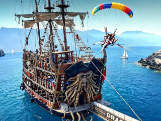 土耳其費特希耶海盜船跳島遊+滑翔傘GoPro照片影片酒店接送
